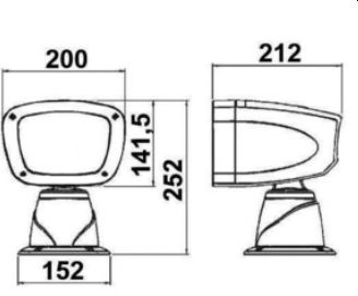 Gehäuse: Alu-Druckguss, korrosionsbeständige weiße Kunstharzlackierung. Vollkommen wasserdicht. Horizontale Drehung, 355°, 2 Geschwindigkeiten. Vertikale Drehung 50°.