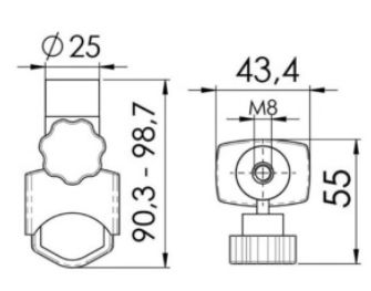 Aus rostfreiem Edelstahl und Aluminium. Der Scheinwerfer wird dank der Halterung mit Kunststoffknau abmontiert. für Rohr Ø 22/25 für Leuchtentyp: E1332101/03/04/05 Ersatzhalterung für E1323900
