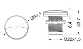 IP68 Aus Technopolymer mit Abdecklid aus poliertem Edelstahl AISI 316. 12 V / 0,4 W LED-Abstrahlwinkel: 120° LED-Anzahl: 2 Ø Einbauloch: 19,2 mm Ø aussen: 33,1 mm Ausladung: 6 mm