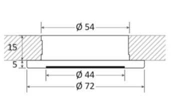Gehäuse aus Polycarbonat und Blende aus hochglanzpoliertem Edelstahl.