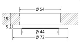 Gehäuse aus Polycarbonat und Blende aus hochglanzpoliertem Edelstahl.