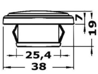 IP67 Gehäuse aus weißem Kunststoff, Frontteil aus hochglanzpoliertem Edelstahl. Schnappmontage. 12/24 V / 0,5 W LED-Anzahl: 6 Ø Einbauloch: 25,4 mm Ø außen: 38 mm Ausladung: 7 mm 25 Lumen / 3000 K LED-Abstrahlwinkel: 360° LED Farbe: weiß