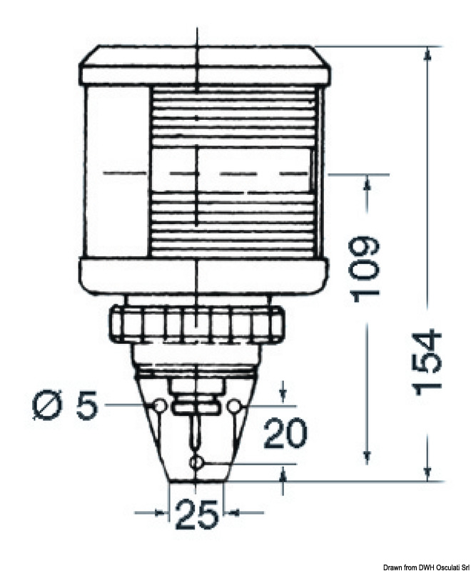 Dieses Navigationslicht ist für die Handelsmarine (Marina Mercantile) zugelassen und besteht aus robustem schwarzem Polykarbonat sowie rostfreiem Edelstahl. Die Lampe ist mit einem senkrechten Glühdraht ausgestattet und gewährleistet zuverlässige Sichtbarkeit für Ihr Boot.