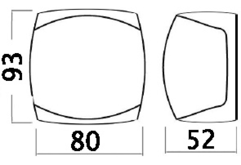 Gehäuse aus hochglanzpoliertem Edelstahl, Hinterteil und Linse aus Polykarbonat. Zertifiziert nach COLREG72 und ABYC-C5, zugelassen für Boote bis zu 20 m.