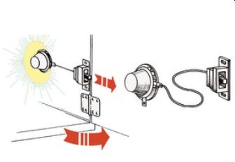 Komplett mit Kabel und Schalter mit Federmechanismus zum Anbringen am Türflügel, wodurch sich beim Öffnen das Licht einschaltet.