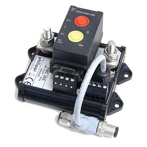 Zum bequemen Schalten der Batterie-Hauptschalter oder der Stromver- sorgung von Hochstromverbrauchern wie Winden, Ankerwinde, Wechselrichter (Energiemanagement) wird der fernsteuerbare BatterieHauptschalter FBC 265 eingesetzt. Der einstellbare Unter- und Über- spannungsschutz schützt gleichzeitig die Batterie vor Tiefentladung. Ist die Dauer-Strombelastung größer 260 A (z. B. Bugstrahlruder), kann durch Kombination des Interface TSC mit dem FBR 500 die Strombelastbarkeit auf 500 A erhöht werden.  Zur unabhängigen Bedienung des Hauptschalters vom P-BUS empfehlen wir die Installation eines Steuertasters auch zur Notbetätigung.  Der Batterie-Hauptschalter kann direkt am Relais über die roten und gelben Knöpfe handbetätigt werden.