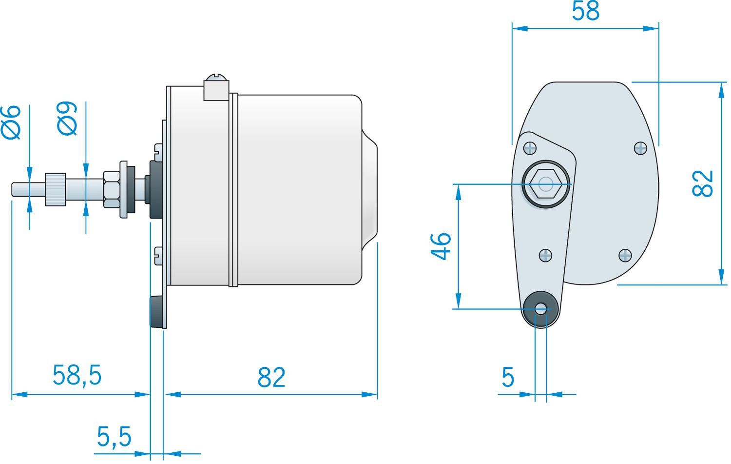 Robuster Scheibenwischermotor mit leistungsstarker Technik und zuverlässiger Konstruktion – ideal für den maritimen Einsatz. Das Gehäuse besteht aus weiß pulverbeschichtetem Aluminium, während Achse und Montageplatte aus rostfreiem Stahl (1.4301 / V2A) gefertigt sind.
