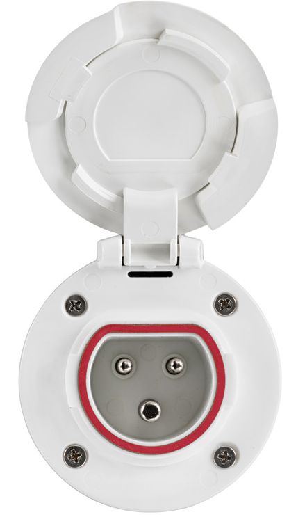 Bootssteckdose und Stecker für 16A – 230V Landstromkabel.