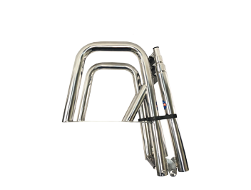 Stufen: 3 + 1 (oval) Länge: 880 mm (ausgezogen) / 380 mm (eingeklappt) Breite Mitte–Mitte: 300 mm Rohr-Ø: 19 / 25 / 32 mm Material: Niro (Edelstahl)