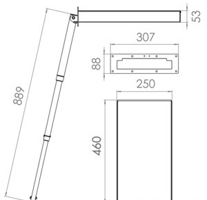 Einbaumaße: 250 × 460 × 53 mm