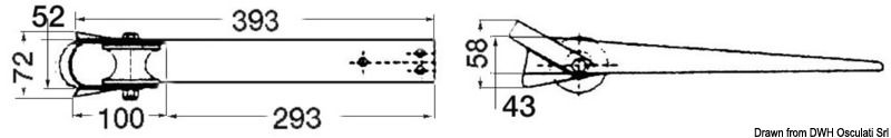 Montage über oder unter dem Bugspriet Mit Bolzen und Kettenführung Länge: 393 mm Breite: 52 mm Ersatzrolle Artikel: E0121882