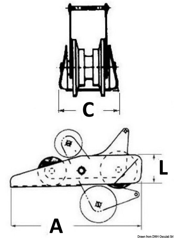 Aus Edelstahl Ideal für alle Anker bis 14 kg A = 320 mm, C = 90 mm, L = 70 mm Ersatzrollen Artikel: E0151901, E0151902