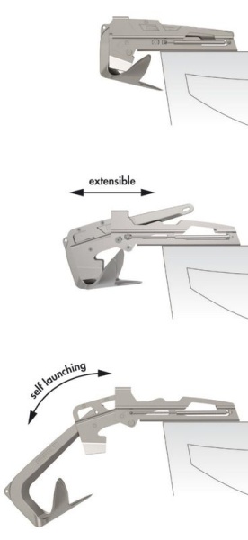 Aus Edelstahl, Gasfeder-System für automatisches Ausfahren, ideal für Trefoil-Anker oder ähnliche. Ausfahrweg bis 22 cm, für vertikale Bugteile, elektropoliert, hohe Traglast.