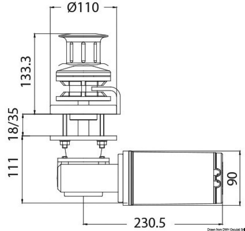 Vertikale Ankerwinde aus Edelstahl AISI 316 mit Rundfuß.