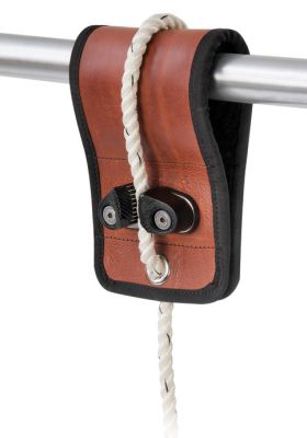 Bewegliche Halterung, um Fender aufzuhängen. Außen mit Leder bezogen, eignet sich für alle Handläufe oder Rohre bis 50 mm Durchmesser. Das Wollfutter verhindert das Verrutschen und schützt zugleich vor Kratzern. Wird mit breiten Klettstreifen, die das Endteil verbinden, geschlossen. Durch die Nockenklampe mit Delrin-Seitenwangen aus poliertem Edelstahl für Leinen mit einem Durchmesser von 10 bis 14 mm geeignet. Die Fender können jederzeit verschieden hoch aufgehängt werden. Zwei innen eingelegte Edelstahlplatten sorgen für die feste und sichere Fixierung der Nockenklampe und sorgen für ein schöneres Design. Leinen-Führring aus Edelstahl.