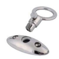 Die Fender können in kürzester Zeit angebracht werden. Der Ring bleibt am Ende der Fender und Rastet in den Sockel ein. Aus hochglanzpoliertem Edelstahl AISI 316. Für Leinen: 8/12mm Maße: 31x77x55H Ø Auge: 25mm
