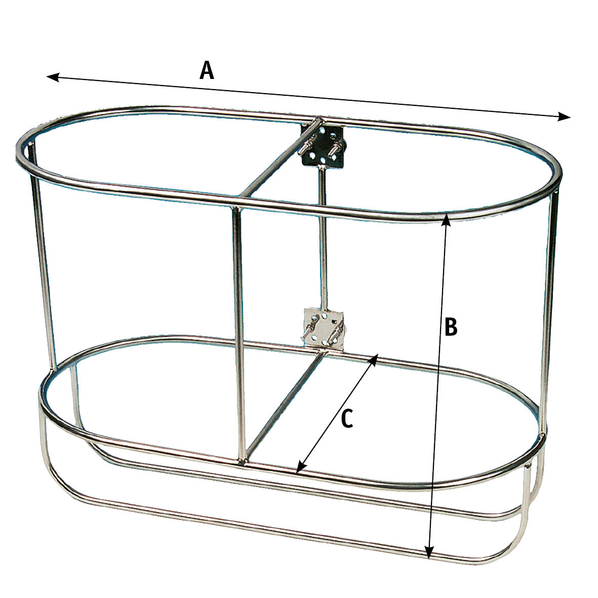NIRO Fenderkorb, gerades Modell für 2 Fender, (Majoni) Geeignet für 2 Fender, Gerades Modell Abmessung A 375mm Abmessung B 320mm Abmessung C 190mm Modell Comet 3 Material Niro Komplett mit Befestigungsbügel für Ø25 und Ø30mm Reling