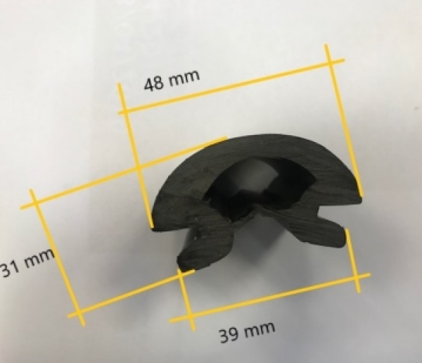 Profilleiste aus starrem ("duralem") Kunststoff, mit flexibler PVC-Einlage.