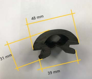 Profilleiste aus starrem ("duralem") Kunststoff, mit flexibler PVC-Einlage.