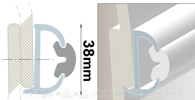 Profilleiste aus starrem ("duralem") Kunststoff, mit flexibler PVC-Einlage.