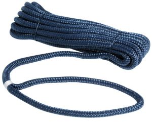 Polyester-Doppelflecht mit hoher Festigkeit und mit von Hand gespleißtem Auge Lieferung in Packtasche Ø Auge: 20 cm Ø Leine: 16 mm Länge: 11 m Bruchlast: 2500 kg Farbe: navy blau