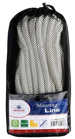 Polyester-Doppelflecht mit hoher Festigkeit und mit von Hand gespleißtem Auge Lieferung in Packtasche Ø Auge: 20 cm Ø Leine: 10 mm Länge: 6 m Bruchlast: 1400 kg Farbe: weiß