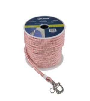 Spinnakerfall mit Schnappwirbelschäkel Edelstahl AISI 316/ A4 Farbe: rot/weiß ø: 8mm Länge: 30m Bruchlast: 1100daN