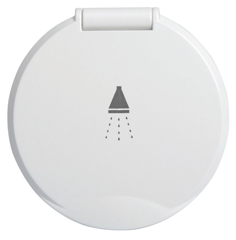 Dusche aus Edelstahl, weiße Einbauschachtel aus UV-beständigem ASA. Deckelbeschichtung: Edelstahl Einbau: Ø 70 x 40,5 mm Ausladung: 88 x 95 mm