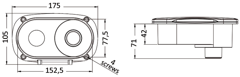 Duschgehäuse aus Edelstahl AISI 316 mit selbsttragendem/gedämpftem Klappdeckel. Duschkopf Tiger aus Edelstahl. Vibrationsfreie Innenbuchse. Mischbatterie mit zylindrischem Hebel.