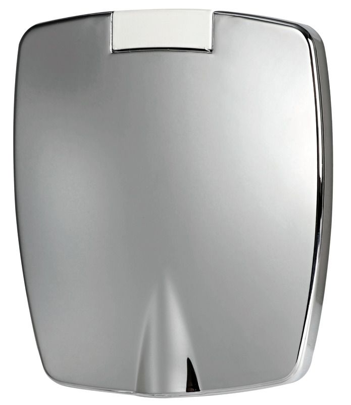 Dusche aus verchromtem Messing, weißes Einbaugehäuse aus UV-beständigem ASA. Deckelbeschichtung: verchromt Einbau: Ø70x40,5 mm Ausladung: 88x95 mm
