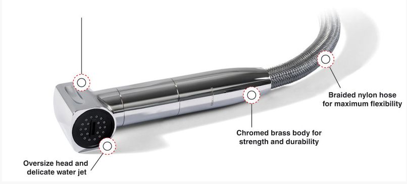 Der Wasserdurchfluss wird mit einem Druckknopf, mit dem der Fluss unterbrochen werden kann, eingestellt.