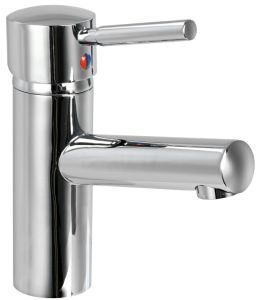 Wasserhahn aus verchromtem Messing. A: 165 mm B: Ø 55 mm C: Ø 45 mm D: 180 mm E: 90 mm