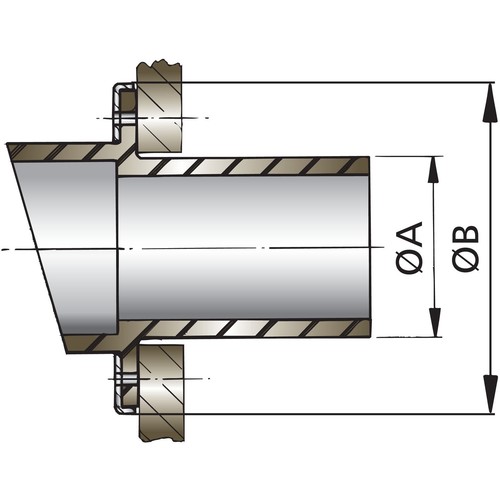 Schlauch-Ø: 40mm Lochmaß A: Ø 53mm B: Ø 86mm Heckauspuffanschluss aus EPDM-Gummi mit hochglanzpoliertem Edelstahl-Montagering. Kann einfach und flexibel am Spiegel montiert werden.
