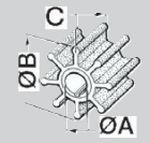 Jabsco Laufrad Ref. 148 Pumpentyp: 17954-0001 Originalnr. (R. CEF) / Pumpe: 148 Maße: A(innen/aussen): ca. Ø 16,85/19mm; B: ca. Ø 65mm; C: ca. 50,7mm 10 Blätter