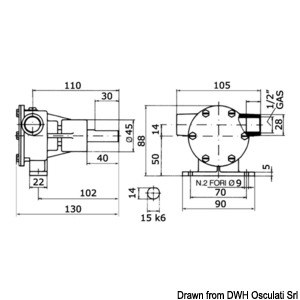 Ersatzteil für Motoren bis 80 PS 1/2"-Anschlüsse Entspricht Jabsco Artikel: 22950-0001 Körper aus Bronze, Flügelräder aus Neopren, werden an den Motor angeschlossen.