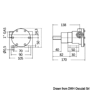 Anschlüsse: 1" Leistung bei 2000U/min.: 107 Liter Äquivalent: Johnson F7B-8-10-24572-13 + Vetus CWP107 Dichtung: Gummidichtung Körper aus Bronze, Flügelräder aus Neopren, werden an den Motor angeschlossen.