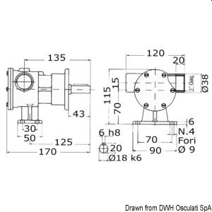 Körper aus Bronze, Flügelräder aus Neopren, werden an den Motor angeschlossen.