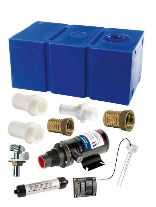 Zur Einleitung der Toilette in den Tank und Tankabsaugung außenbords.