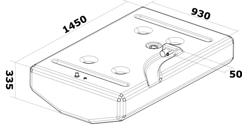 Maße (L × B × H): 1450 × 930 × 355 (+50) mm