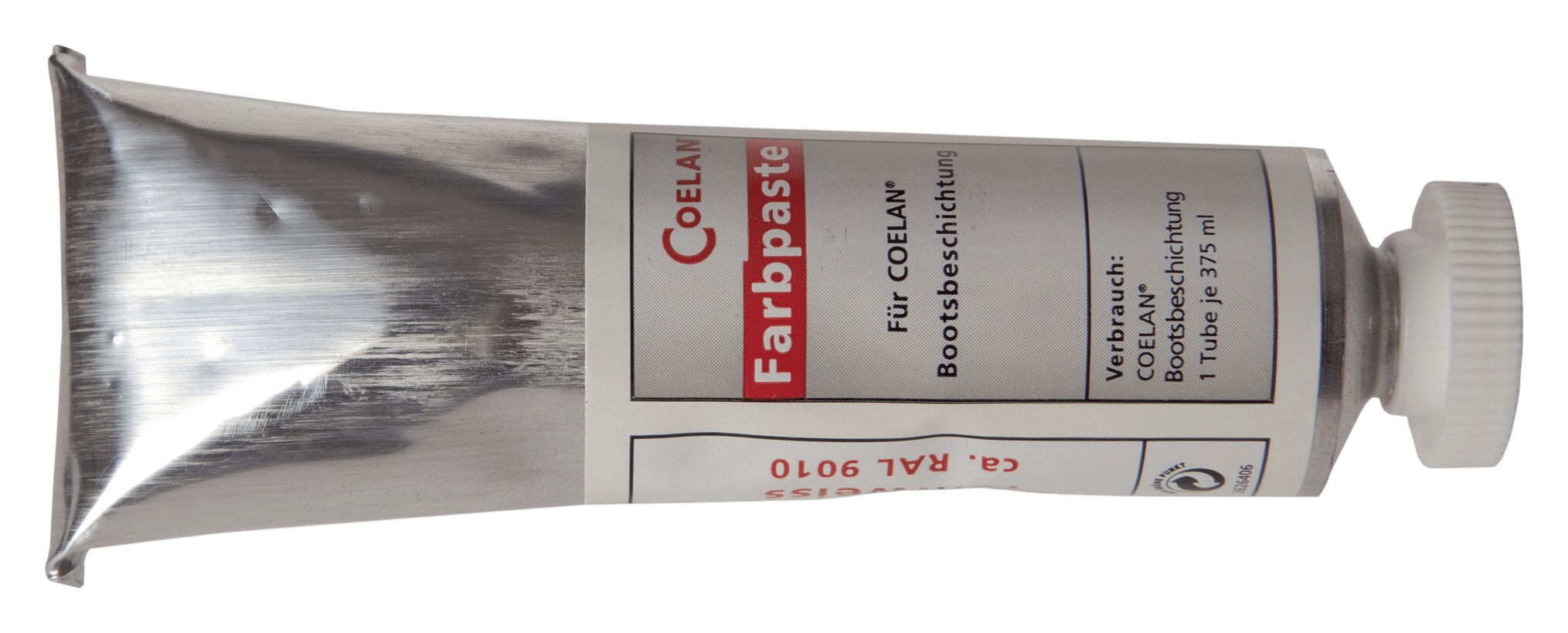 Tube 37ml mit Farbpaste zum Abtönen von Coelan® Bootsbeschichtung transparent-glänzend für farbige Flächen. Verbrauch: Eine Tube ist ausreichend für 375ml.