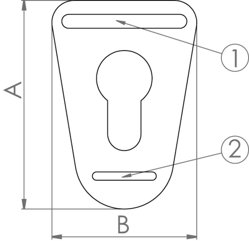 Schnalle aus Edelstahl AISI 316 zur einfachen Befestigung des Verdecks am Gestänge A: 74mm B: 50mm Öse1: 40x5mm Öse2: 20x3mm