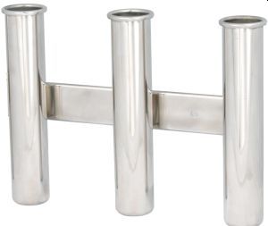 Für Wandmontage. Angelruten-Haltestift. Oben und unten abgerundete Ecken. Hochglanzpoliert. Breite: 298 mm Höhe: 220 mm Für 3 Angelruten.