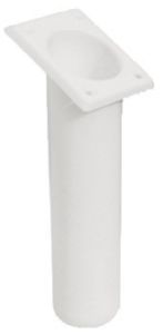 Angelrutenhalter aus UV-beständigem Polypropylen, weiß 30° Mit abgerundeten Kanten. Durch den runden Boden passt die Angelrute bestens in den Halter. Ø innen: 43 mm Neigung: 30° Befestigungsplatte: quadratisch 87 x 63 mm Länge: 240 mm Farbe: weiß