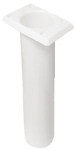 Angelrutenhalter aus UV-beständigem Polypropylen, weiß 90° Mit abgerundeten Kanten. Durch den runden Boden passt die Angelrute bestens in den Halter. Ø innen: 43 mm Neigung: 90° Befestigungsplatte: quadratisch 87 x 58 mm Länge: 230 mm Farbe: weiß