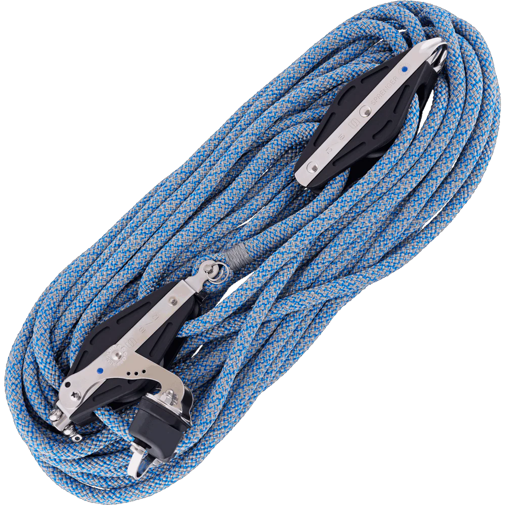 Blöcke: Nadellagerblöcke Tauwerk: Länge 15m, Ø 10mm Arbeitslast: 560kg Bruchlast: 1400kg Gewicht: 1500g