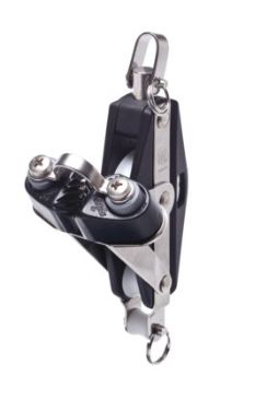 Wangen: schwarzes Spritzguss-Nylon Scheiben: solides weisses Polyacetal Gleitlager: Messing Rahmenkonstruktion: Edelstahl AISI 30 Scheiben Ø in mm: 42 + 20 Tauwerk Ø in mm: 10 BL DAN: 920 SWL DAN: 460