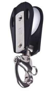 Wangen: schwarzes Spritzguss-Nylon Scheiben: solides weisses Polyacetal Gleitlager: Messing Rahmenkonstruktion: Edelstahl AISI 30 Scheiben Ø in mm: 50 Tauwerk Ø in mm: 14 BL DAN: 2040 SWL DAN:1020