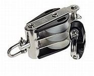 HYE Offshore Blöcke Wangen: schwarzes Spritzguss-Nylon Scheiben: solides weisses Polyacetal Gleitlager: Messing Rahmenkonstruktion: Edelstahl AISI 316 3-in-1-Wirbelkopfsyste Scheiben Ø in mm: 63 Tauwerk Ø in mm: 16 BL DAN: 4210 SWL DAN: 2105