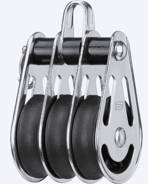 stark belastbares Gleitlager Seitenteile aus Edelstahl Rostfrei und Seilrollen aus hochwertigem UV-beständigem Kunststoff Taumelvernietung verhindert scharfe Grate am Nietkopf Bolzen und Splentring gestatten ein leichtes Montieren bzw. Demontieren von Bügel und Wirbel Anzahl Rollen: 3 360° drehbar: nein Lagerart: Gleitlager Tau Ø: 10mm Rolle Maße: 35 x 11mm Arbeitslast: 212kg Bruchlast: 850kg Gewicht: 106g H1: 77mm Material Rollen: Kunststoff