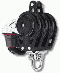 Der kräftige, leichtlaufende 57mm Carbo Dreifach-Block mit integrierter Cam-Matic Curryklemme und Hundsfott wurde als Basis einer 6:1- Tailje entwickelt. Der Block überzeugt durch geringes Gewicht, hohe Belastbarkeit und Zuverlässigkeit. Wangen und Scheibe sind aus hochfestem, leichtem Carbo Komposite gefertigt. Frei laufende Delrin Kugellager sorgen für leichten Lauf, auch unter hoher Belastung.